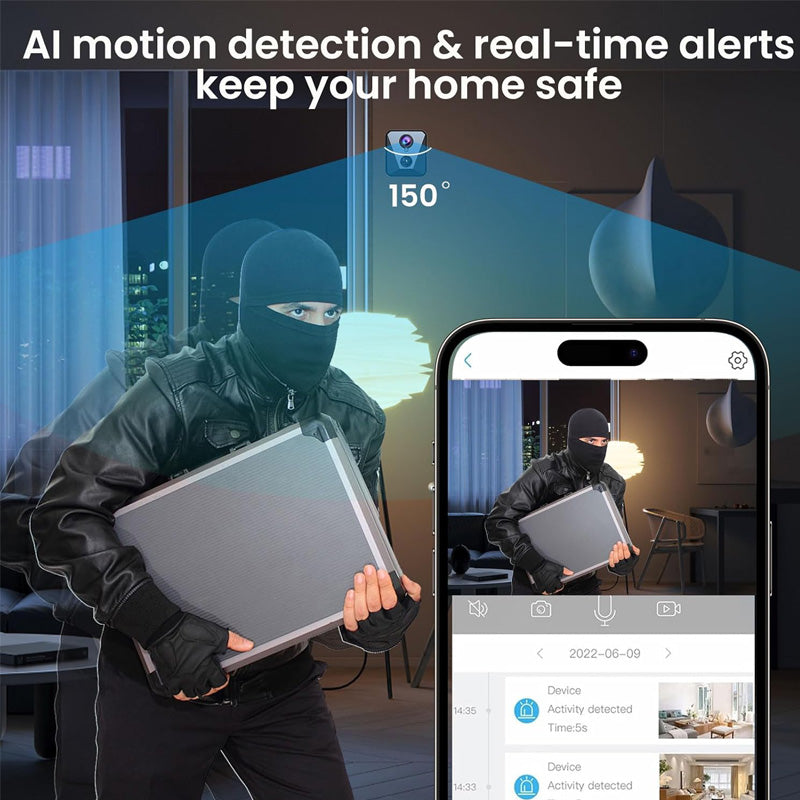 Gebruiksvriendelijke bediening - Binnen enkele minuten ingesteld: zet de minicamera aan, verbind met wifi en voeg toe aan de app. Ondersteunt tot 128 GB lokale opslag op SD-kaart waarbij oudere opnames automatisch worden overschreven, 30 dagen gratis cloudopslag en eenvoudige telefoontoegang.