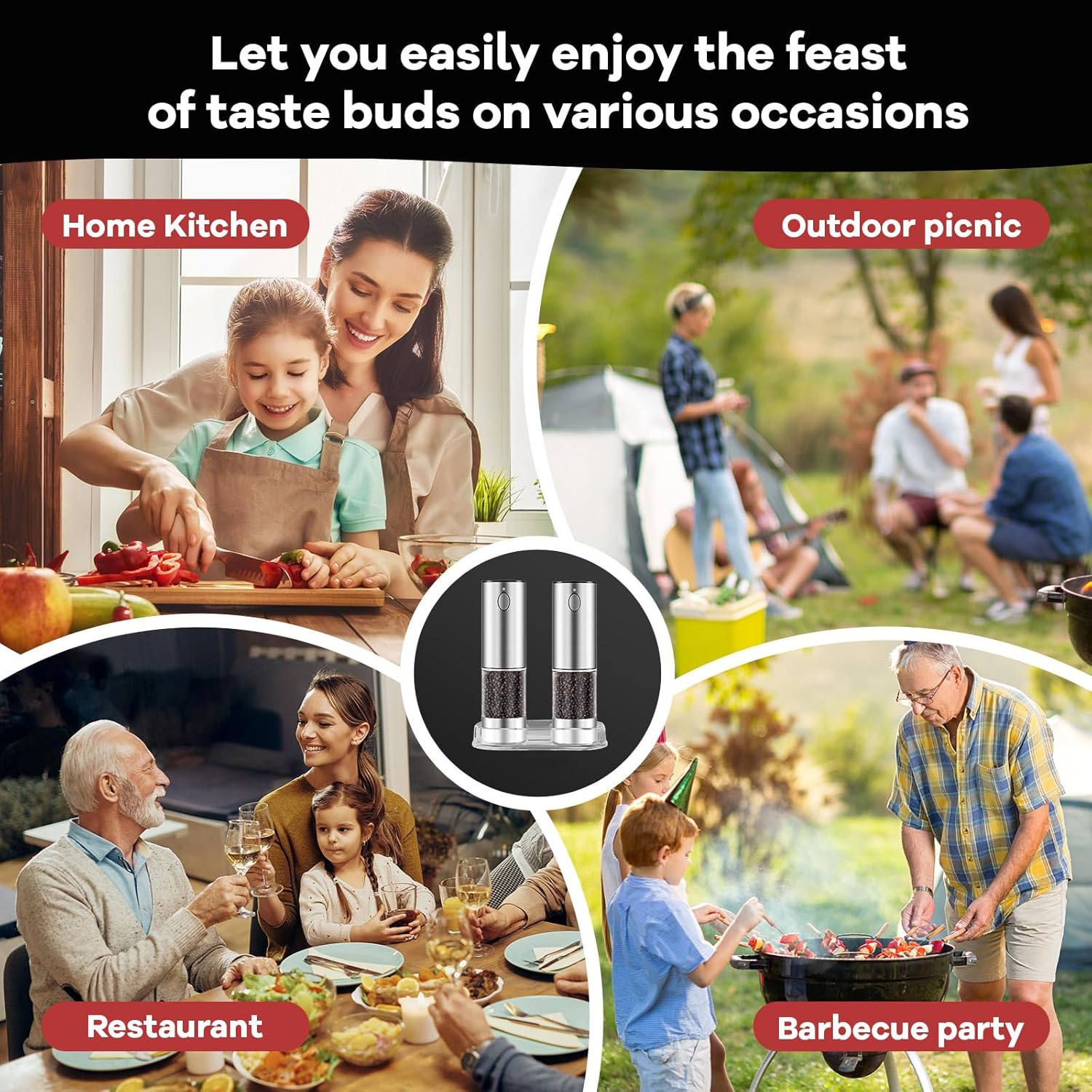 Onze geweldige elektrische zout- en pepermolen is gemaakt van hoogwaardig roestvrij staal en ABS, wat perfect is voor bruiloften, verjaardagen, housewarmings, Moederdag, Vaderdag en Kerstmis. Verras uw dierbaren. De grinder kan een speciaal cadeau zijn voor vrouwen en mensen die van koken houden