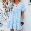 Mode Losse V-hals Plissé Korte Jurk