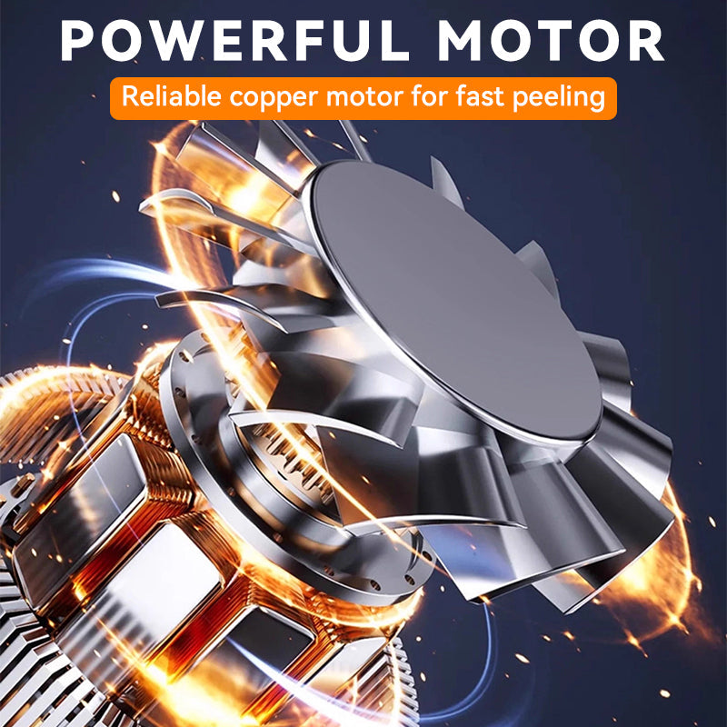 KRACHTIGE KOPERDRAADMOTOR – Deze elektrische schiller is uitgerust met een krachtige koperdraadmotor die efficiënt en snel verschillende soorten fruit en groenten kan schillen. De motor levert constante prestaties, waardoor zelfs kleine vruchten moeiteloos kunnen worden geschild zonder dat de motor blokkeert of vermogen verliest. Dankzij de duurzaamheid en betrouwbaarheid is dit apparaat een tijdbesparende aanvulling in elke keuken.