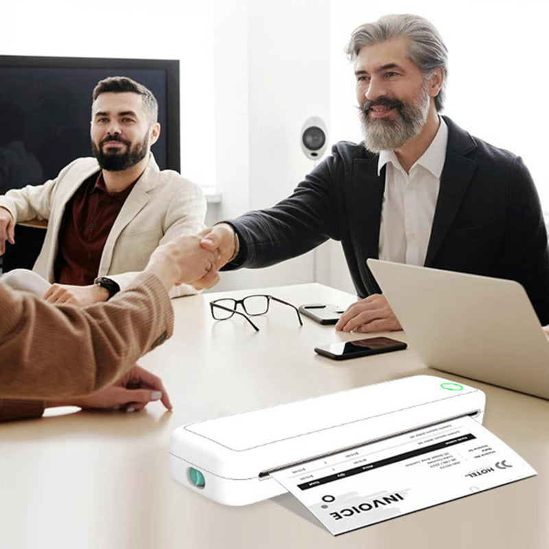 COMPACTE EN DRAGEBARE ONTWERP: Deze A4-mini thermische printer is ultra-compact en licht van gewicht, waardoor hij gemakkelijk mee te nemen is. De draagbare maat past perfect in tassen en is ideaal voor printbehoeften onderweg, zowel op het werk als tijdens reizen.