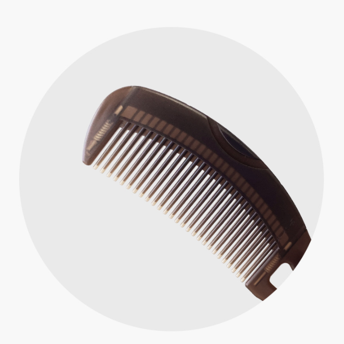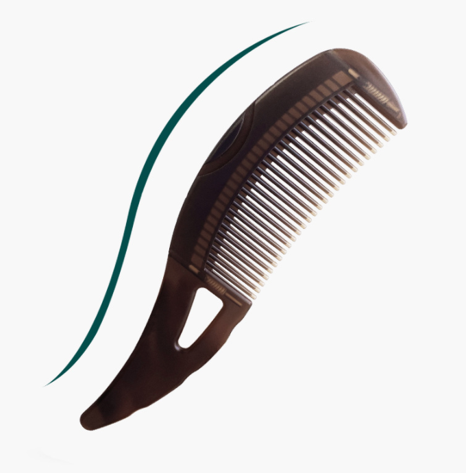 Kam je haar: Kantel de kam ongeveer 45° en druk hem stevig tegen je hoofdhuid, beginnend van de voorkant van je voorhoofd naar de achterkant. Gebruik lichte kracht en kam langzaam tot je bij je nek komt.