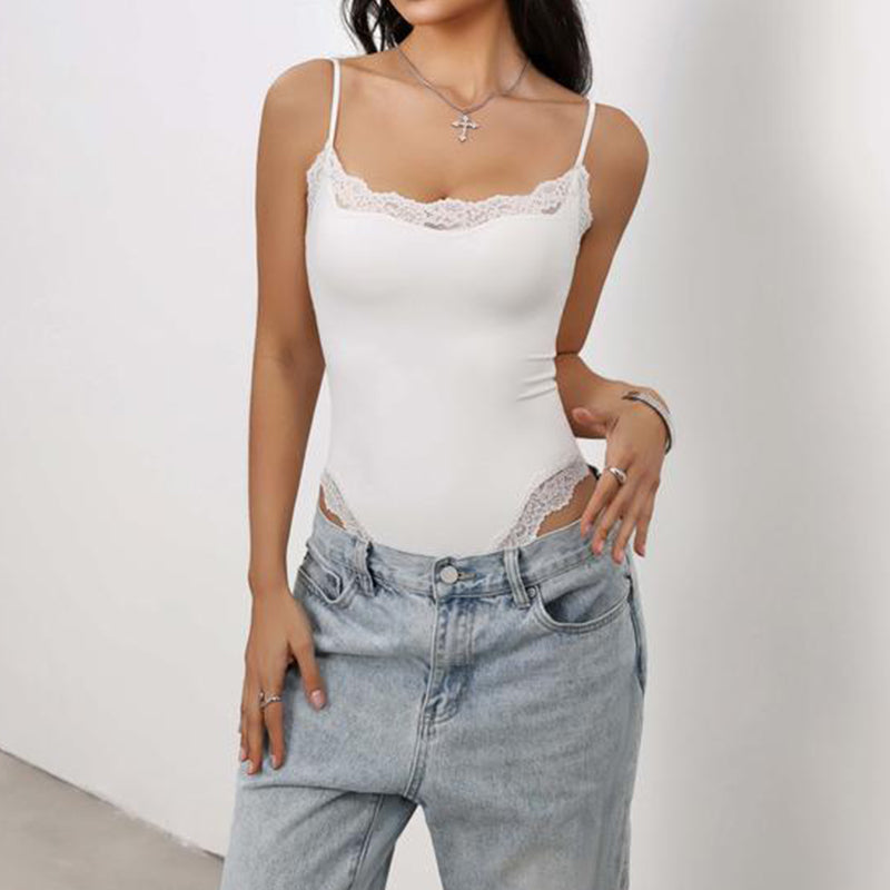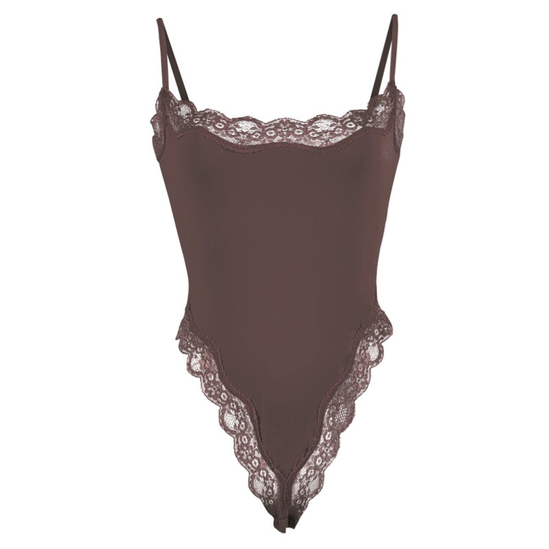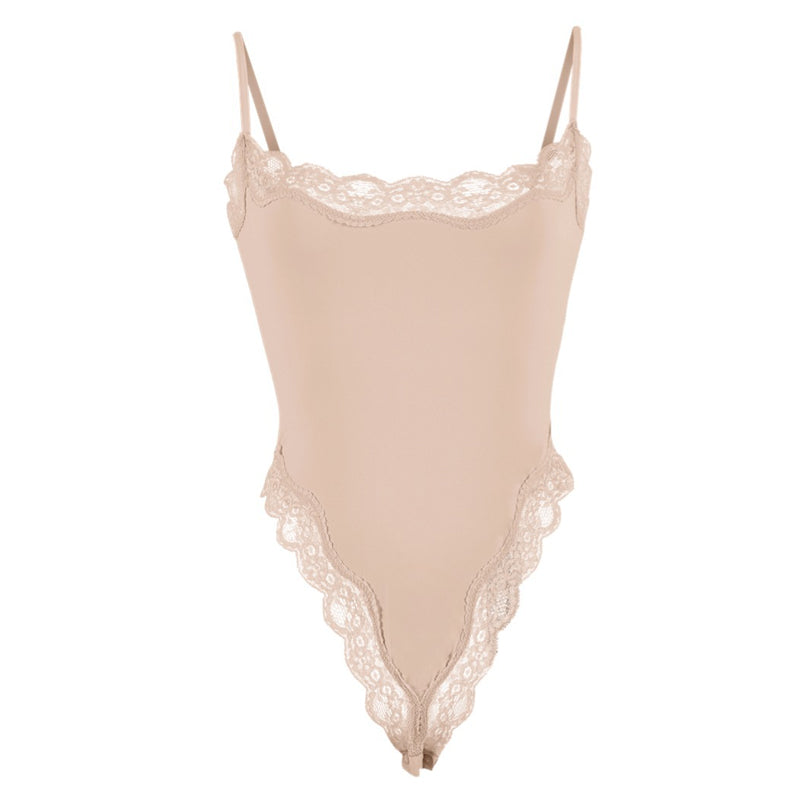 Figurformender Spitzen-Body mit Spaghettiträgern