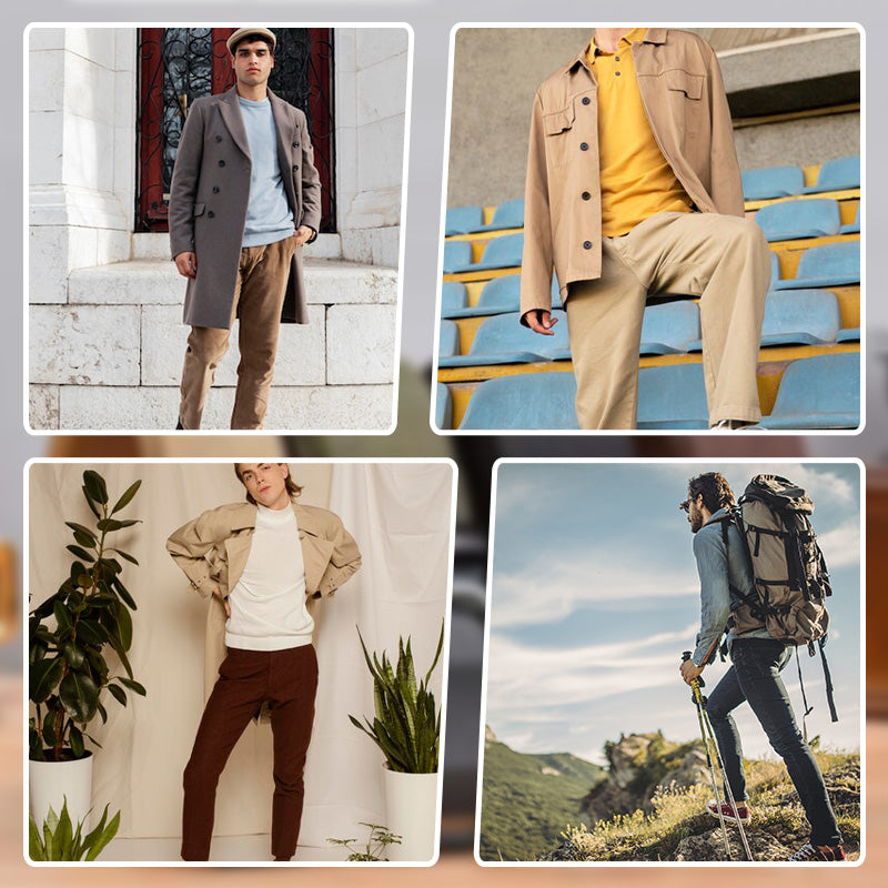 • Farben: Schwarz, Grau, Blau, Olivgrün, Khaki, Kaffee