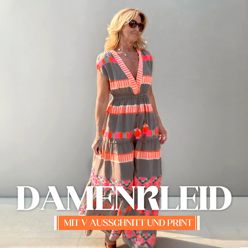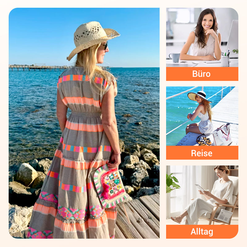 Lässiges Damen V-Ausschnitt Vintage Streifenmuster Ärmelloses Kleid