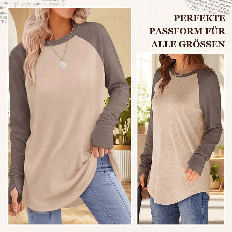 Damen lässiges Langarm-Oberteil mit Rundhalsausschnitt