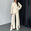 🍂Frühherbst-Special 50 % Rabatt💕Gemütliches zweiteiliges Set aus Rippstrick für Damen mit Hose mit geschlitztem Bein